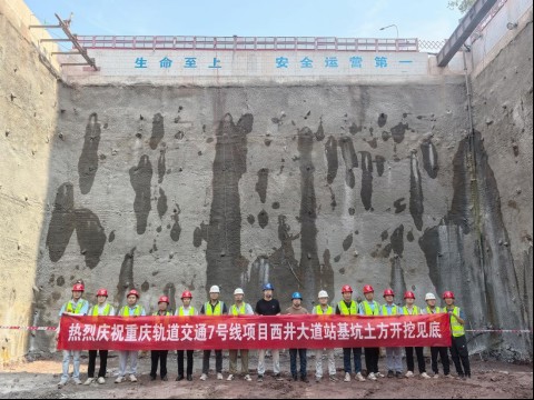 重慶軌道交通7號(hào)線一期工程線路全長(zhǎng)27.822公里,起于科學(xué)城站,止于金鳳站,主要沿縱五線、飛雪路、永泰路、科學(xué)大道、高新大道、櫻桃路敷設(shè),共設(shè)車站18座,換乘站7座,分別與規(guī)劃17號(hào)線、15號(hào)線、27號(hào)線、永川線、19號(hào)線及既有1號(hào)線換乘。西井大道站是重慶軌道交通7號(hào)線一期工程的第六座車站,位于西林大道路與永泰路交叉路口南側(cè),沿永泰路呈南—北向設(shè)置。車站有效站臺(tái)寬14米,標(biāo)準(zhǔn)段寬,總長(zhǎng)306.6米,為地下兩層島式站臺(tái)車站,采用明挖法施工。車站基坑深18.3至22.6米,圍護(hù)結(jié)構(gòu)采用樁加錨桿及板肋式錨桿擋墻相結(jié)合的支護(hù)形式。該線路全線通車后,對(duì)提升西部槽谷軌道交通線網(wǎng)覆蓋率,支撐片區(qū)高質(zhì)量發(fā)展具有重要意義。