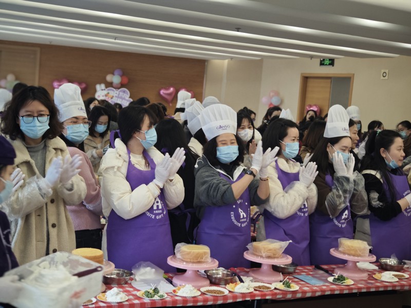 活動特邀專業烘焙師全程指導,現場宛如專業烘焙工坊,轉臺、抹刀等專業器具及新鮮食材一應俱全。烘焙師現場示范蛋糕制作的抹面技法,重點講解裱花技巧、裝飾布局等實操要點。女職工分組操作,通過奶油調色、裱花造型等創意實踐,完成各具特色的節日蛋糕。現場此起彼伏的交流聲與歡笑聲中,既有裱花失誤引發的趣味互動,也不乏驚艷造型收獲的集體贊嘆。制作完成后,女職工們攜作品合影留念,并將成品封裝帶回家中分享。