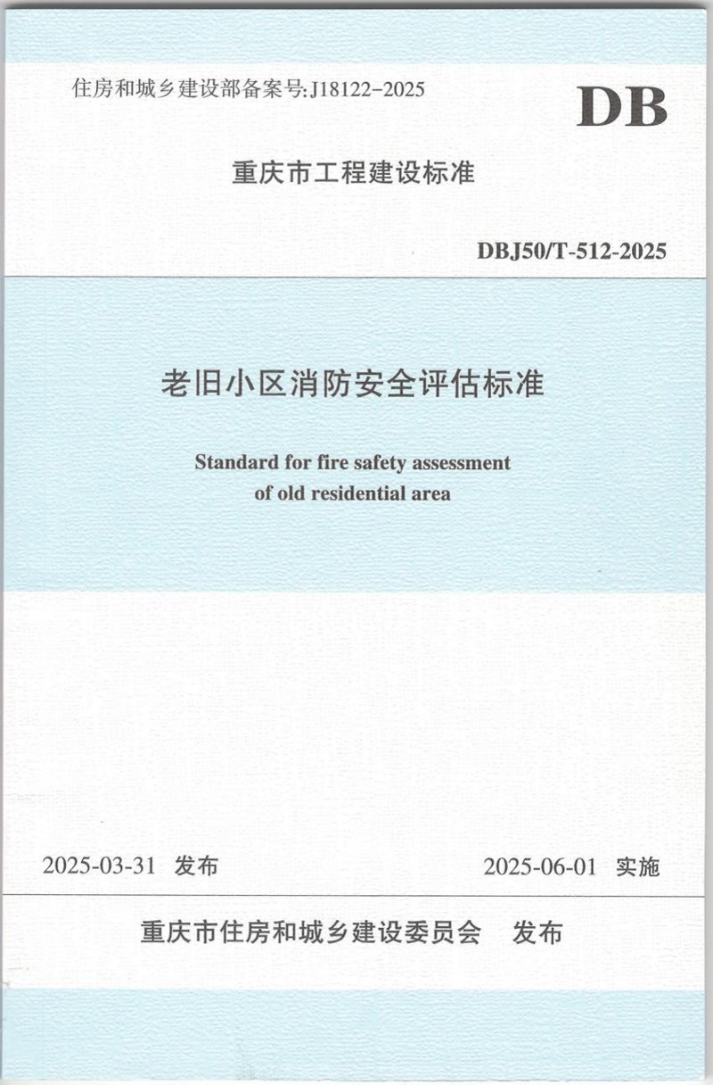 近日,由重慶設(shè)計集團下屬子企業(yè)重慶市建筑科學(xué)研究院有限公司(以下簡稱"市建科院")牽頭編制的重慶市工程建設(shè)標(biāo)準(zhǔn)《老舊小區(qū)消防安全評估標(biāo)準(zhǔn)》(DBJ50/T-512-2025)通過重慶市住房和城鄉(xiāng)建設(shè)委員會審批正式發(fā)布,將于2025年6月1日起開始實施。